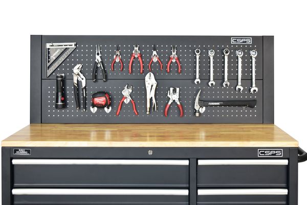 Vách lưới CSPS 132cm, giúp bạn sắp xếp khu vực làm việc hiệu quả, là một trang bị cần thiết cho nhà máy, garage, cửa hàng hay văn phòng làm việc CSPS 132cm Pegboard back wall which is suitable for workshop, factory, garage, shop, office… will help you organize working area efficiently.